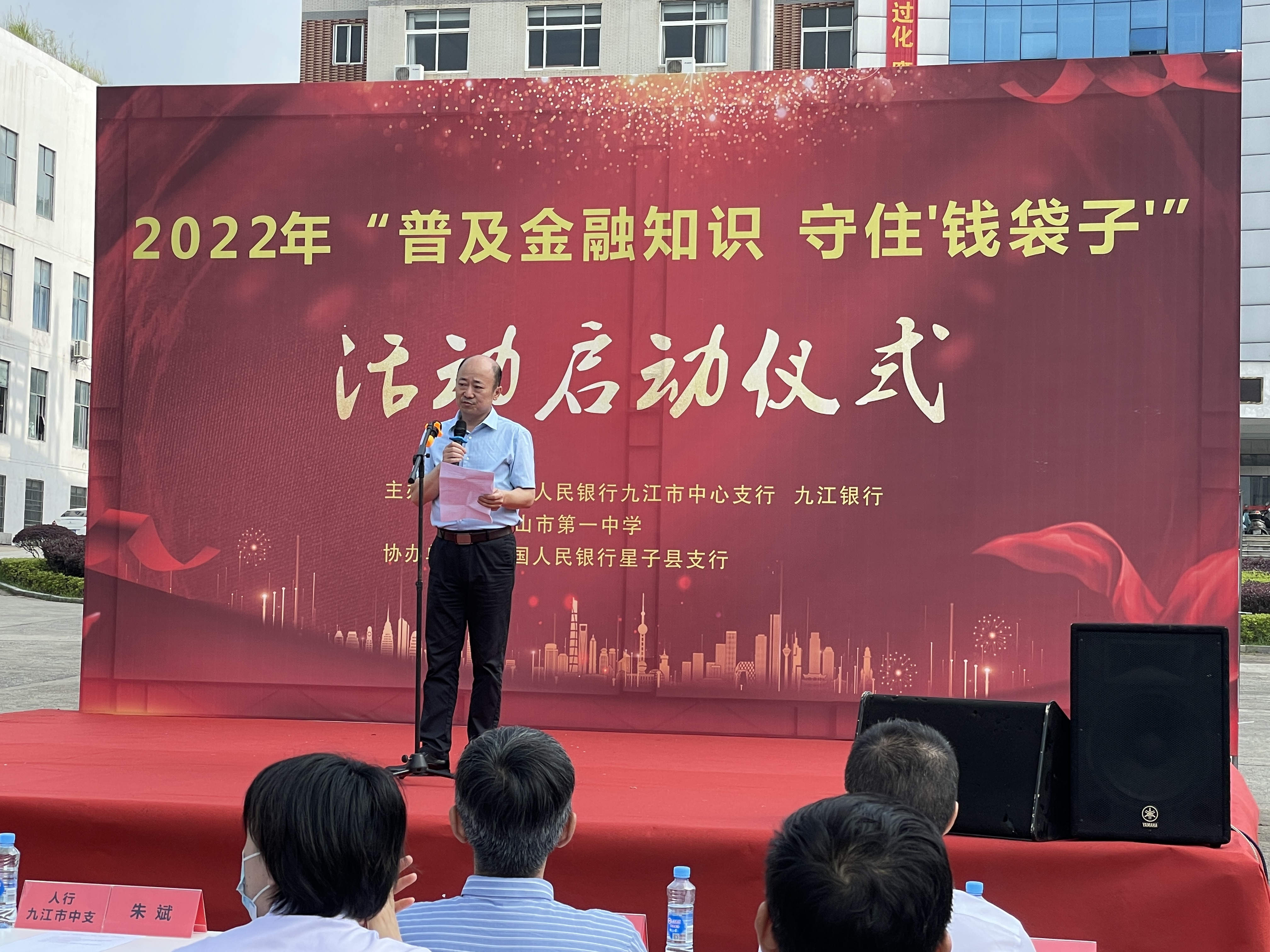 6月14日,由人行九江市中心支行與九江銀行共同主辦的2022年“普及金融知識,守住‘錢袋子’”活動啟動儀式在白鹿洞金融教育示范基地順利舉辦。人民銀行九江市中心支行副行長朱斌作重要講話。